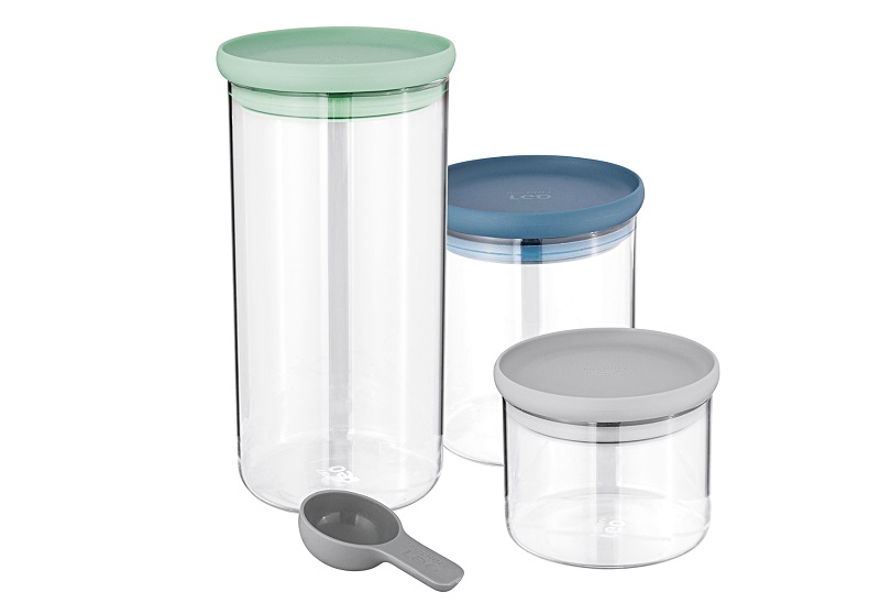 Das Lebensmittelbehälterset Leo von BERGHOFF besteht aus 3 verschieden großen Gläsern mit bunten, luftdichten Verschlüssen. Die Gefäße eigenen sich perfekt zur Aufbewahrung Ihrer geernteten Kräuter, aber auch für Ihr Müsli oder Backzutaten ist reichlich Platz. Aufgrund der besonders großen Öffnungen, lassen sich die Zutaten sehr leicht einfüllen und alles wird frisch und schmackhaft gehalten. Mit dem dazugehörigen Messlöffel können Sie die richtigen Mengen abmessen. Die Gläser sind aus strapazierfähigem und kratzfestem Material gefertigt und können problemlos in der Spülmaschine gereinigt werden.