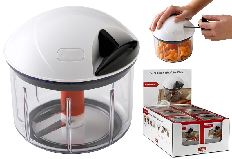 Der Obst- und Gemüseschneider "finecut" von FISSLER eignet sich nicht nur zum Zerkleinern von Obst und Gemüse, sondern auch für Ihre Gartenkräuter. Frische Kräuter lassen sich in dem Gerät nicht nur klein schneiden, sondern auch trockenschleudern. Zudem können Soßen und Suppen mit dem Schneider verrührt und gemixt werden. Zerkleinertes Schnittgut kann in dem Gemüseschneider frisch gehalten werden. Der Obst- und Gemüseschneider besteht aus Kunststoff, hat eine Höhe von 9,5 cm und einen Durchmesser von 12,5 cm. Viel Spaß beim Essen zubereiten und verfeinern!