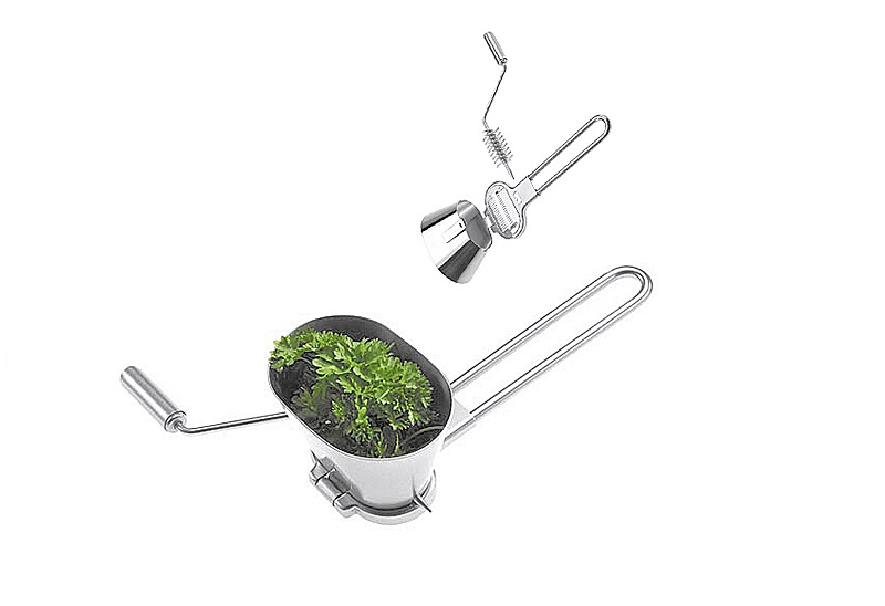 Die Kräutermühle "Exklusiv" von WESTMARK ist komplett aus Edelstahl gefertigt. Dank der hochwertigen Edelstahlmesser im Inneren der Mühle, können Sie Ihre frischen Kräuter und Zwiebeln, ohne großen Aufwand zerkleinern. Die Kräutermühle hat die Maße 20x 9x 6,5 cm. Sie lässt sich problemlos in der Spülmaschine reinigen.