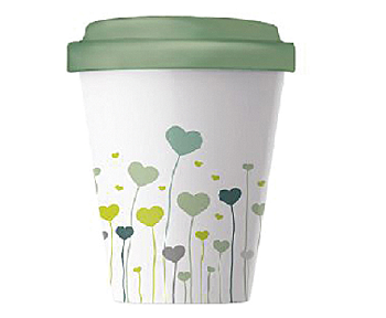 Der Becher Coffee to Go "Field of Love" von CHIC-MIC empfiehlt sich zum Transport Ihrer Getränke. Der Becher in klassischem weiß mit türkisem Deckel und bunten Herzen ist umweltfreundlich und durch sein originelles Design zieht er sämtliche Blicke auf sich. Er besteht aus Bambusfasern und Maiskornpulver. Das Trinkgefühl ähnelt einem Trinken aus der Porzellantasse. Die Qualität ist durch EU-Normen geprüft. Außerdem ist der Becher geruchs- und geschmacksneutral und kann problemlos in der Spülmaschine gereinigt werden. Er ist nicht für die Mikrowelle geeignet. Der Becher fasst 400 ml und hat einen Thermo- Schutzgriff. Somit können Sie heiße und kalte Getränke in ihm genießen.