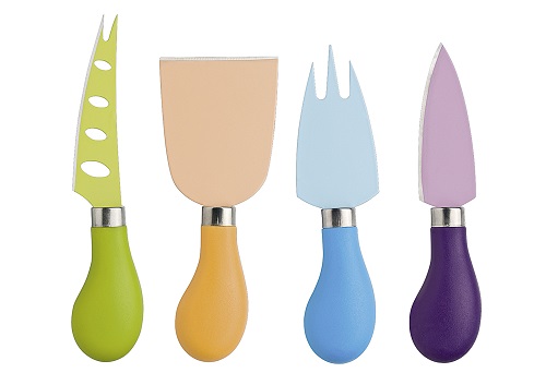 Jetzt wird es bunt auf Ihrem Tisch. Mit den Käsemessern von Zassenhaus haben Sie einfach für jede Käsesorte das passende Messer dabei! Das Set besteht aus zwei beschichteten Edelstahlmessern für Hartkäse und Weichkäse. Zusätzlich erhalten Sie einen Parmesanbrecher und eine Gabel zum Servieren. Die Teile haben jeweils eine Länge von 13 cm. Für echte Käsefans ist dieses Set ein absolutes Muss! Und Ihre Gäste werden garantiert begeistert sein!